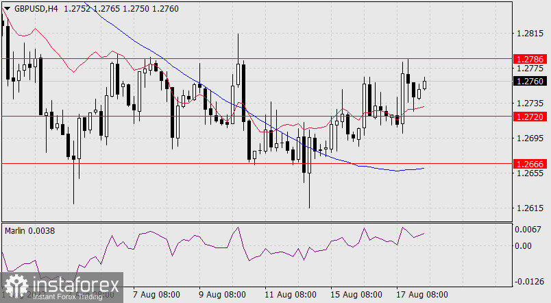 Pada grafik empat jam, harga terletak di atas garis indikator keseimbangan dan MACD, serta mengalami kenaikan secara lokal. Marlin Oscillator mengembangkan wilayah positif. Dalam tren saat ini, fase korektif meningkatkan momentum.